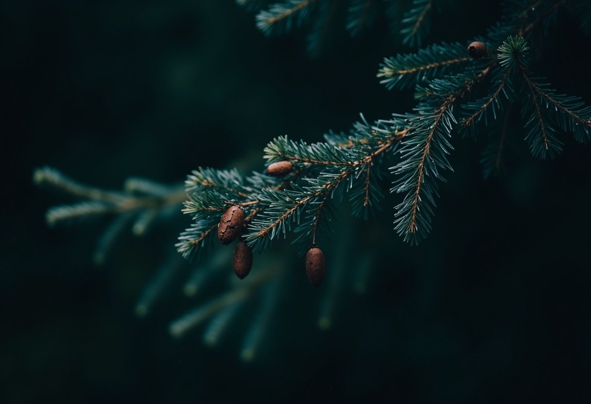 background, blurred, botany, branch, close-up, cone, coniferous, dark, evergreen, flora, forest, green, natural, nature, needles, outdoors, pine, plant, tree, woodland