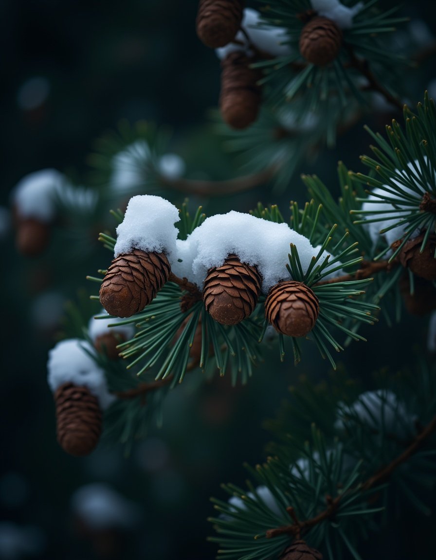 branch, brown, christmas, closeup, cold, forest, frost, frozen, green, holiday, nature, needle, outdoors, pine cone, pine tree, season, snow, tree, white, winter