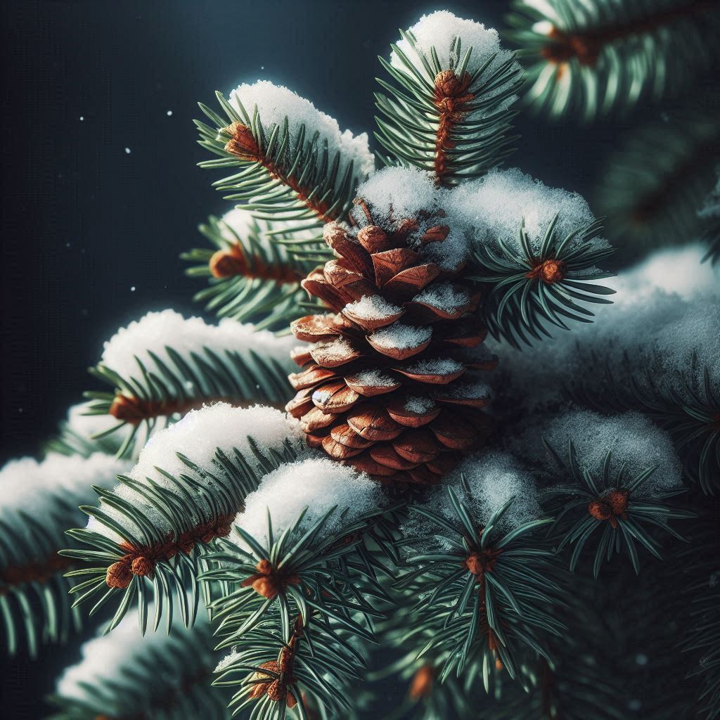 branch, brown, christmas, close-up, detail, forest, green, holiday, macro, nature, outdoors, pattern, pine cone, pine needles, season, snow, texture, trees, white, winter