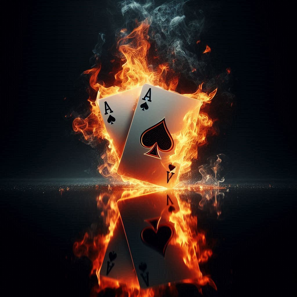 Two aces of spades burn in a fiery inferno