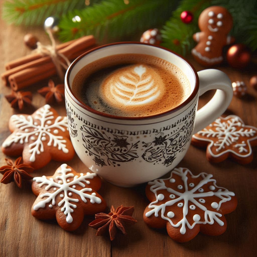 anise, beverage, christmas, cinnamon, coffee, cookies, cozy, cup, dessert, drink, festive, gingerbread, holiday, snowflake, star, sticks, sweet, table, warm, wood