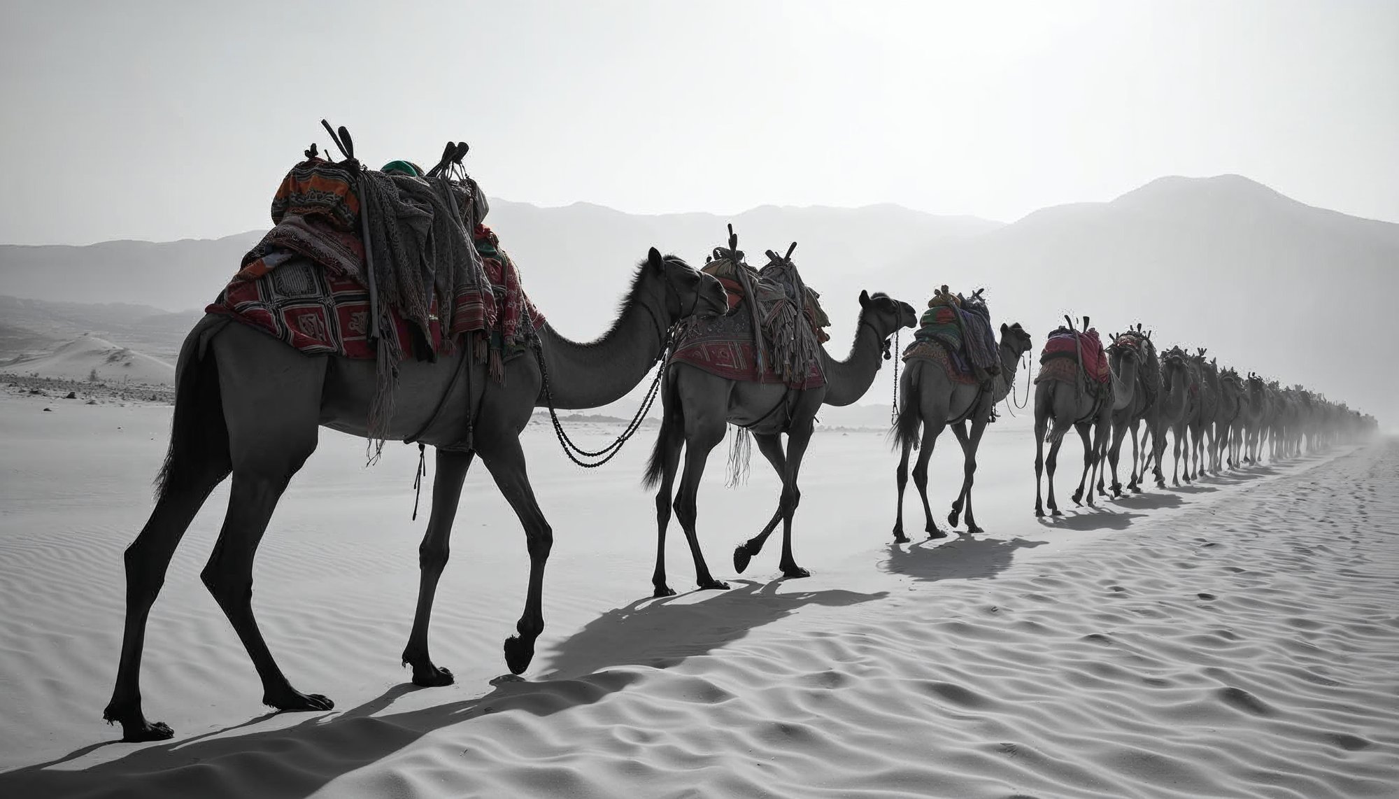 adventure, animals, arid, camels, caravan, daylight, desert, dunes, heat, horizon, journey, landscapes, nomads, sand, shadows, supplies, terrain, travel, trekking, wildlife