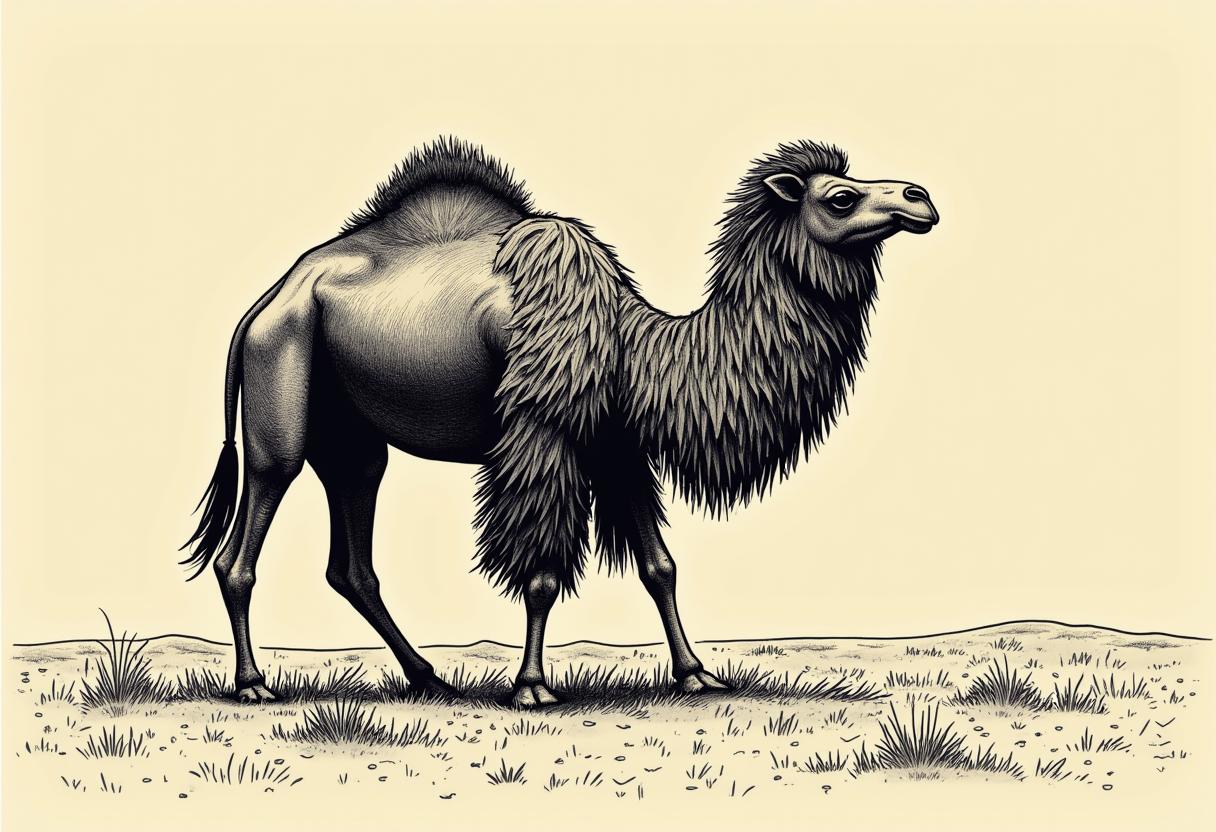 animal, art, barren, camel, creative, desert, drawing, dry, fur, habitat, illustration, landscape, nature, scenery, sketch, textured, unique, vegetation, walking, wildlife