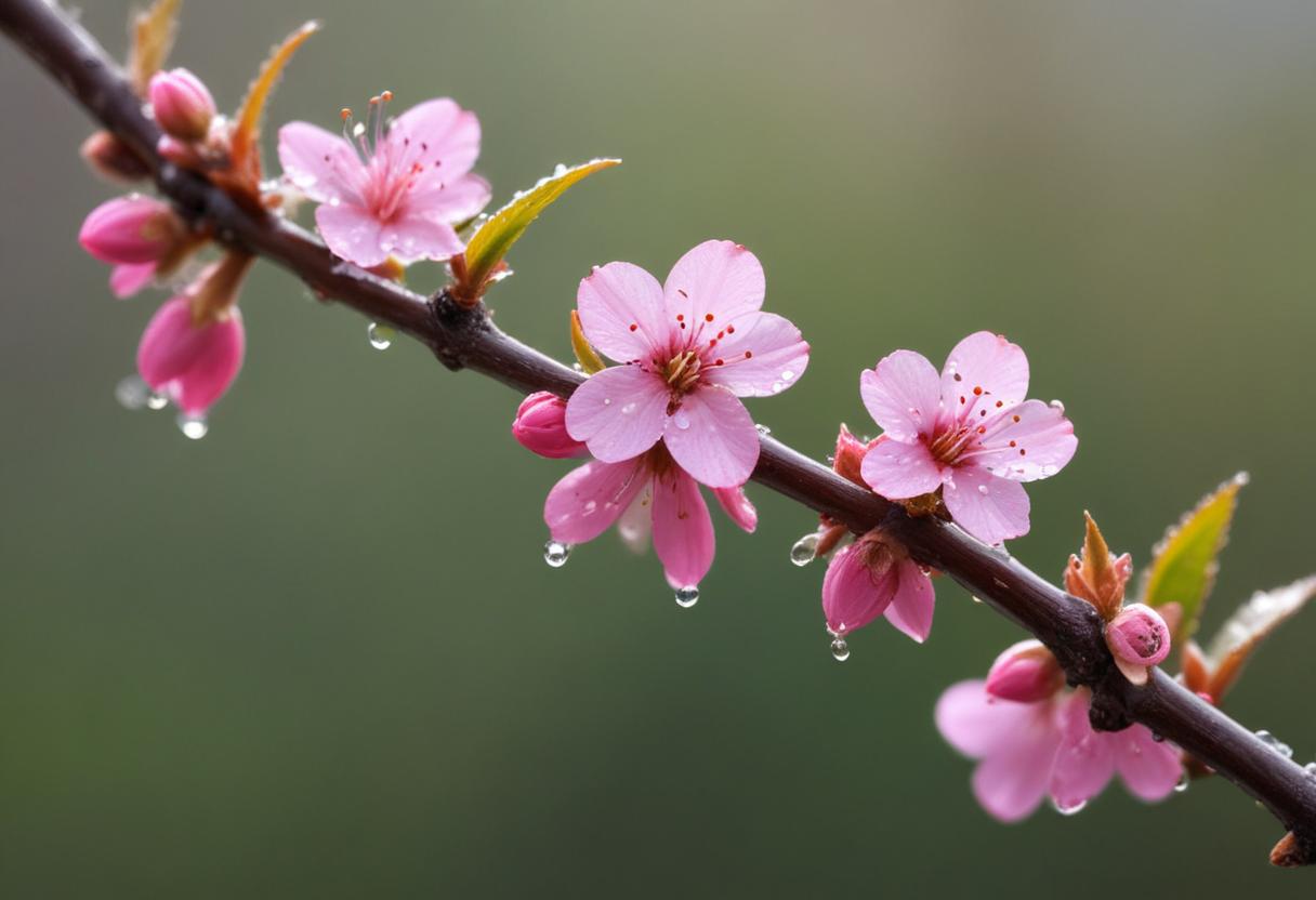 beauty, bloom, branch, cherry blossoms, close-up, environment, flora, freshness, gardening, growth, nature, outdoor, petals, pink flowers, raindrops, seasonal, spring, sunlight, tranquility, wet
