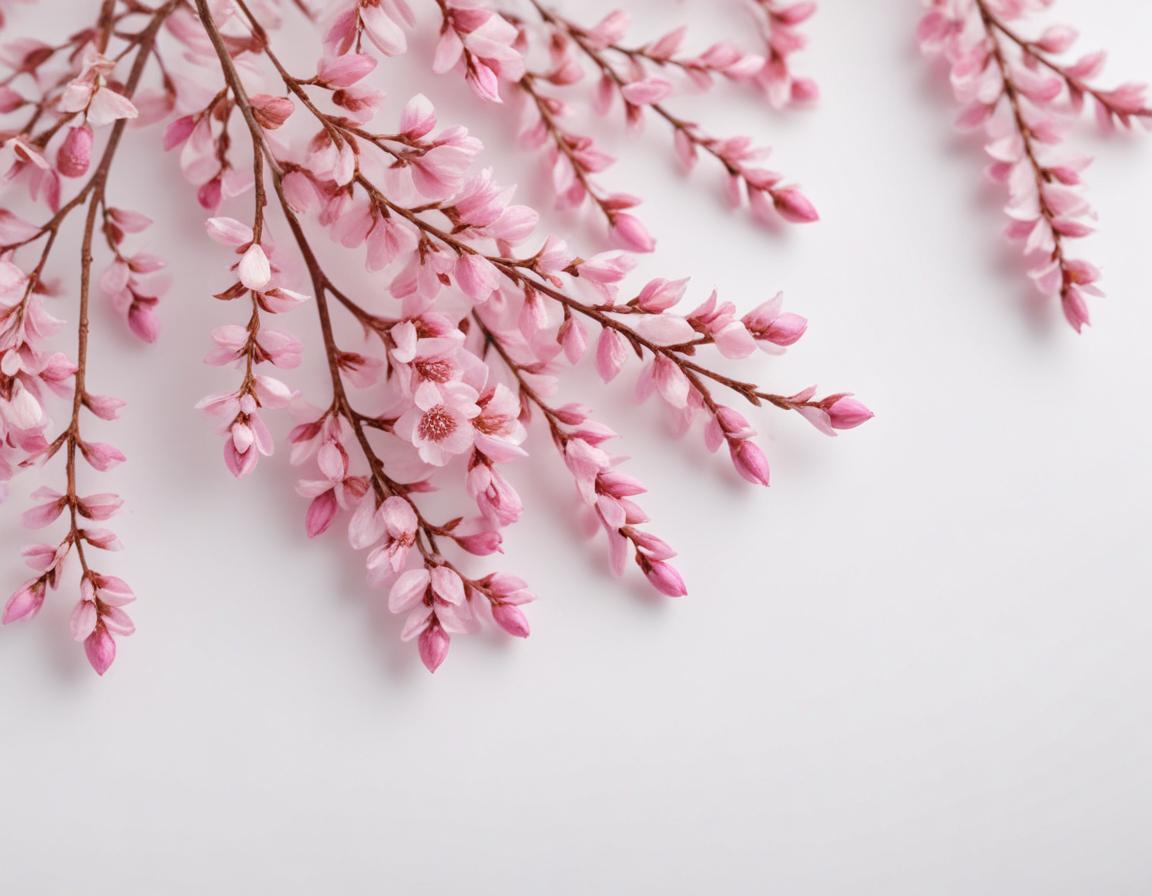 Soft pink flowers are elegantly displayed on a smooth white background, showcasing their intricate details and natural beauty.