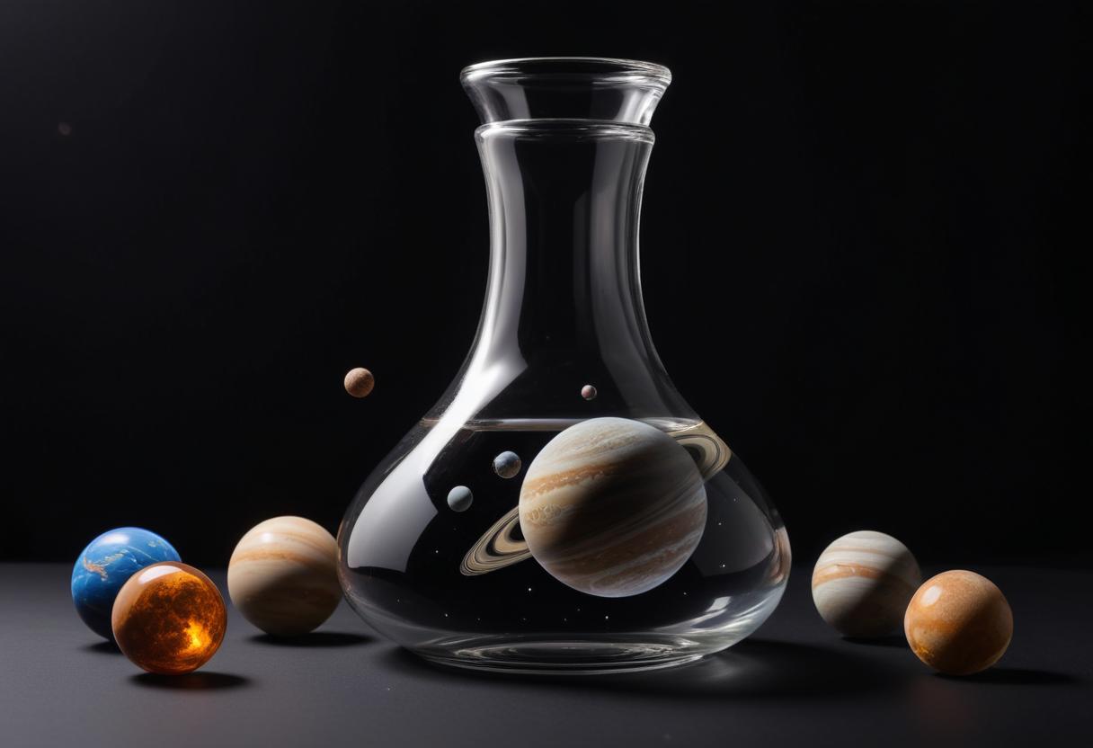 Planets and glass vase display a cosmic arrangement