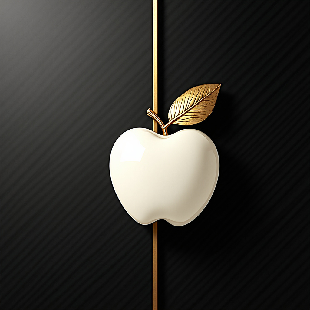 A stylish cabinet handle features an apple shape accented with a golden leaf, showcasing modern design and luxury in home decor.