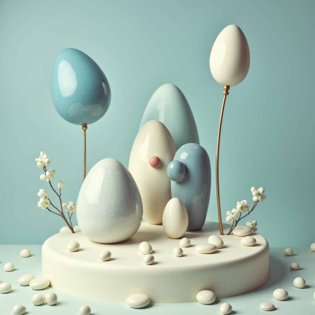 aesthetics, arrangement, art, celebration, centerpiece, ceramic, decor, decorative, design, display, eggs, festive, flowers, holiday, minimalist, modern, pastel, shape, spring, texture