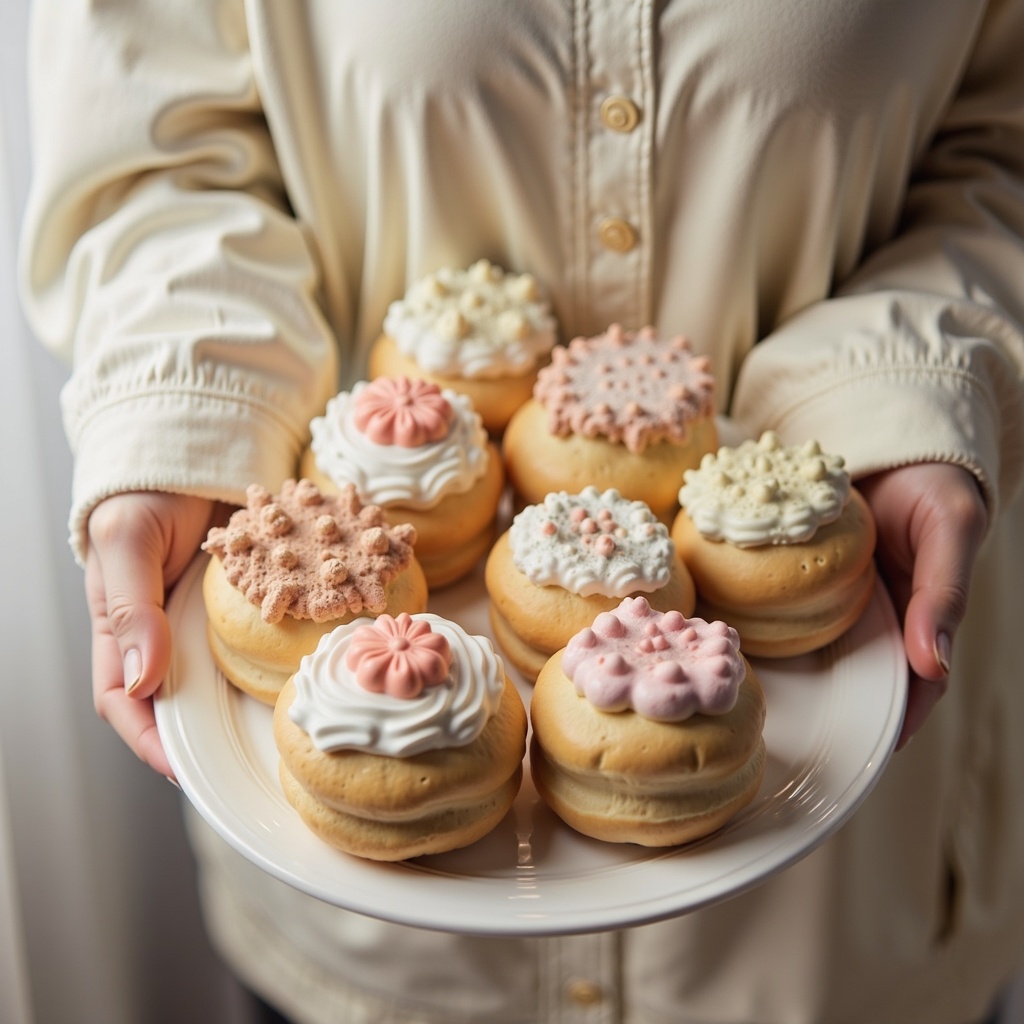 Deliciously decorated pastries on a plate