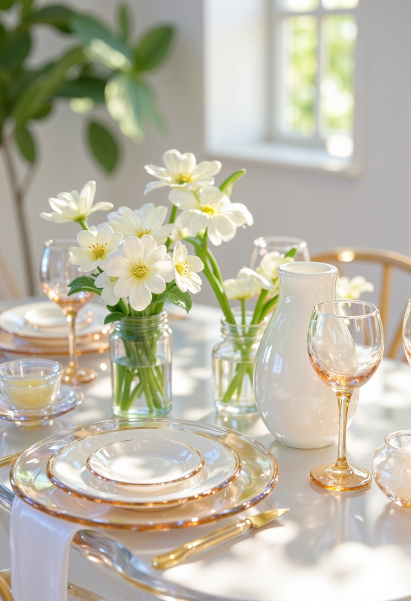 brunch, celebration, cuisine, decoration, design, dining, dishes, elegant, event, flowers, gathering, glassware, home, hospitality, interior, style, sunlight, table setting, tableware, white flowers