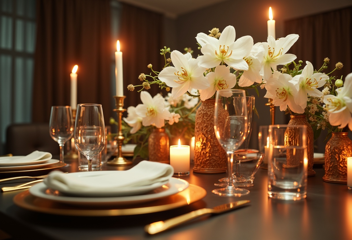 Chic dinner setting with flowers and candles