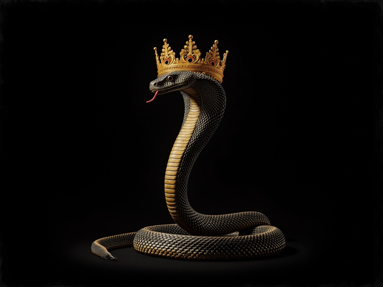 animal, artwork, black background, creative, creature, crown, elegant, exotic, golden, majestic, nature, portrait, power, regal, reptile, royal, scales, snake, symbolism, wildlife