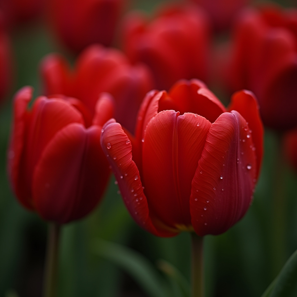 Blooming red tulips in soft lighting showcase natural beauty