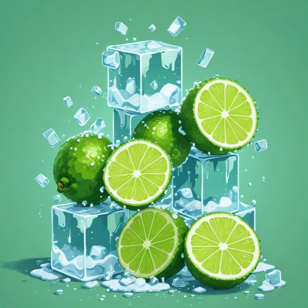 Limes and ice cubes create a refreshing summer display