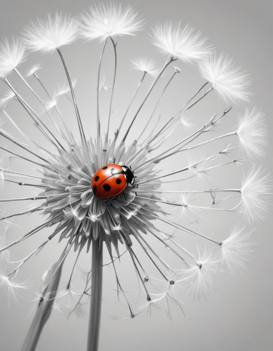 bloom, bright, close-up, dandelion, ecosystem, fauna, flora, flower, gardening, insect, ladybug, macro, nature, outdoors, petals, pollination, seasonal, seeds, spring, wildlife