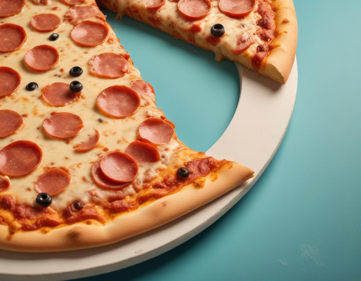 Italian, cheese, crust, cuisine, delicious, dinner, fast food, food, gourmet, meal, olives, party, pepperoni, pizza, slice, snack, tabletop, tomatoes, toppings, turquoise