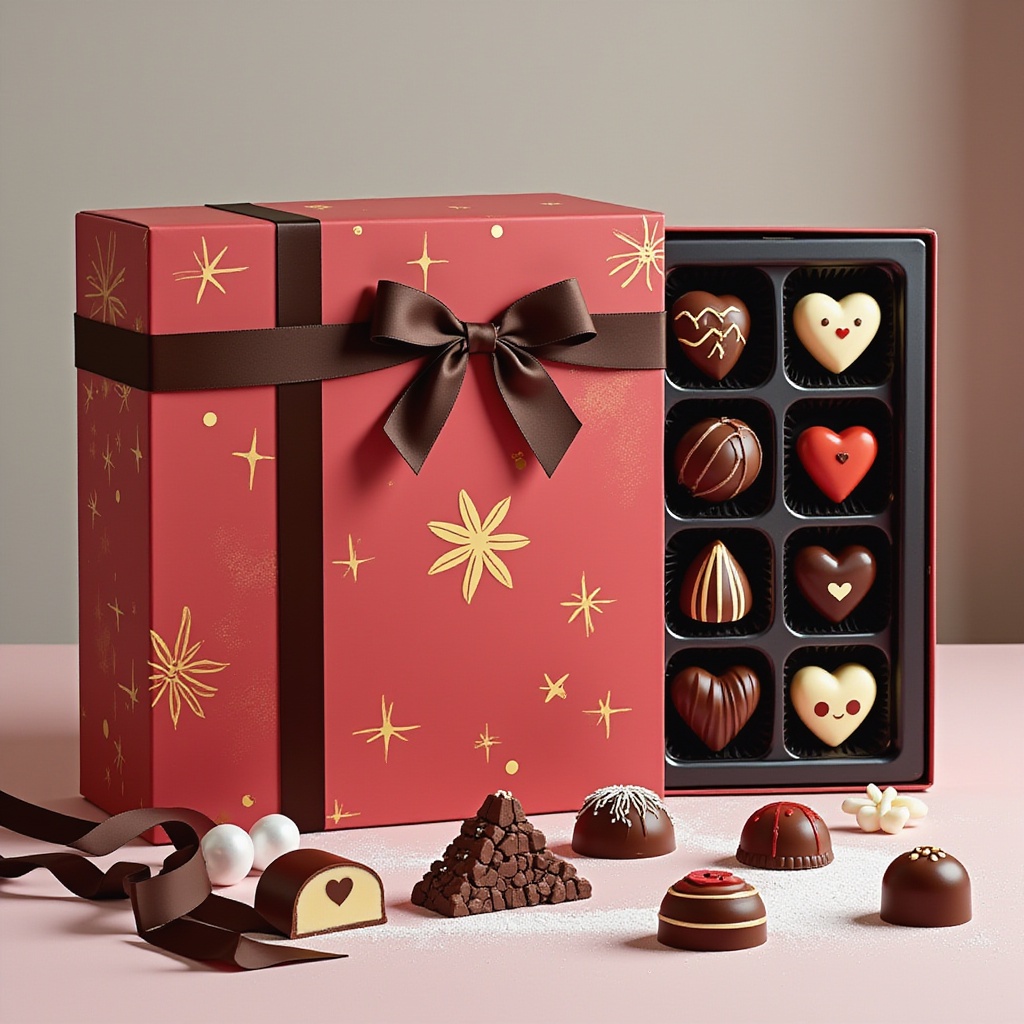 assorted treats, candies, celebration, chocolate truffles, chocolates, colorful, dessert, elegant, festive, flavors, gift box, gourmet, handmade, heart shapes, holidays, joy, love, packaging, sweets, treat assortment