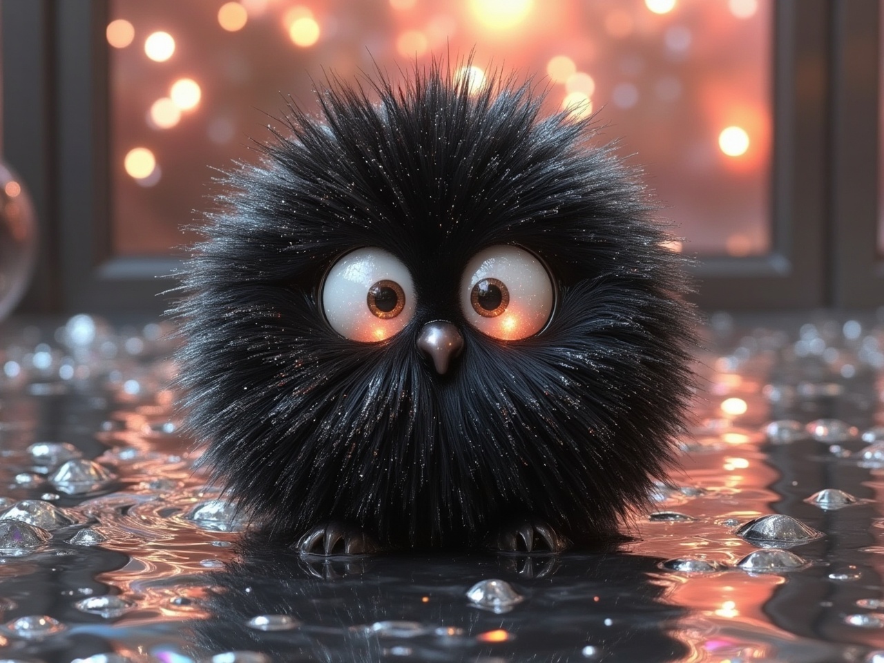 adorable, animation, black, charm, creativity, cute, detail, environment, eyes, fluffy character, fun, furry, lights, playful, reflection, round, shiny, sparkles, surface, whimsical