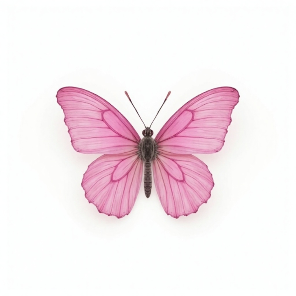 A delicate pink butterfly displays its wings with intricate patterns, highlighting its beauty against a clean white backdrop.