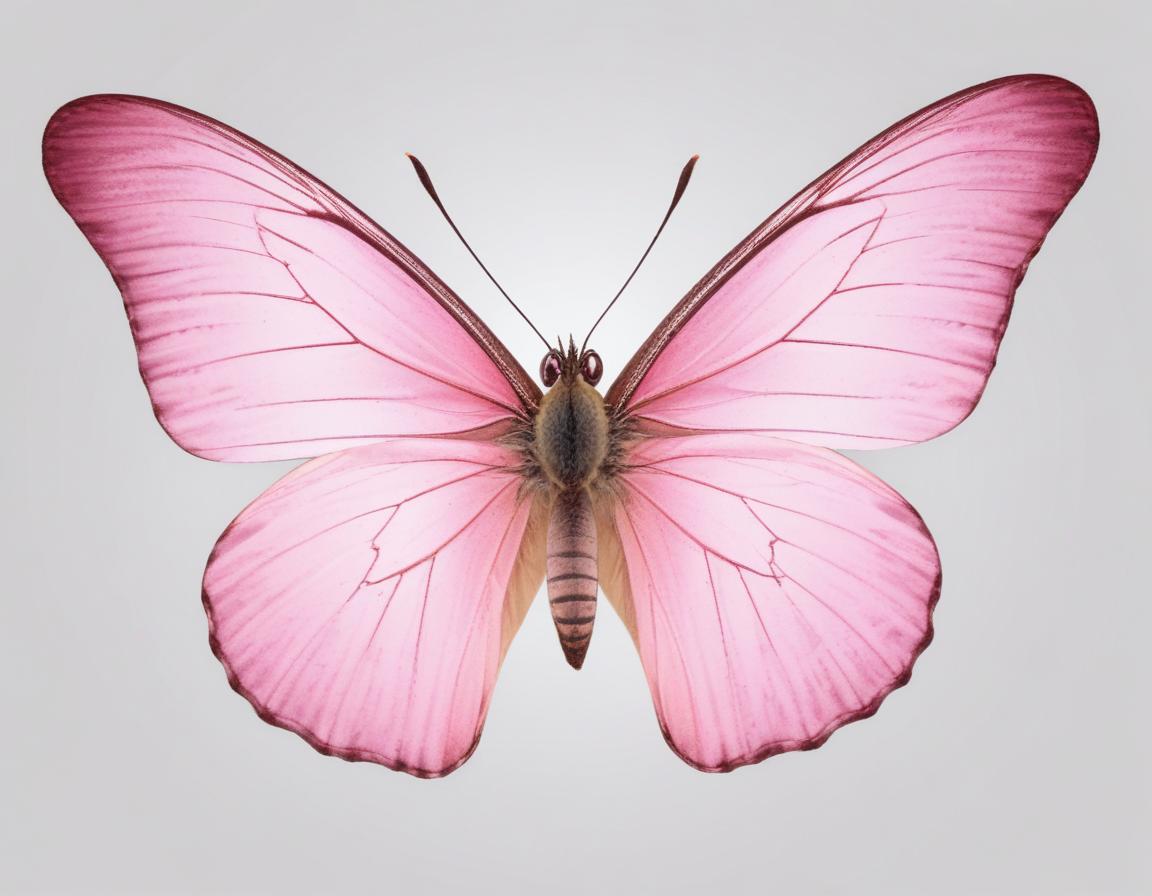 animal, antennae, beautiful butterfly, butterfly, flying insect, gray background, insect, isolated background, macro, nature, pink wings, translucent wings, wildlife, wings, pink butterfly