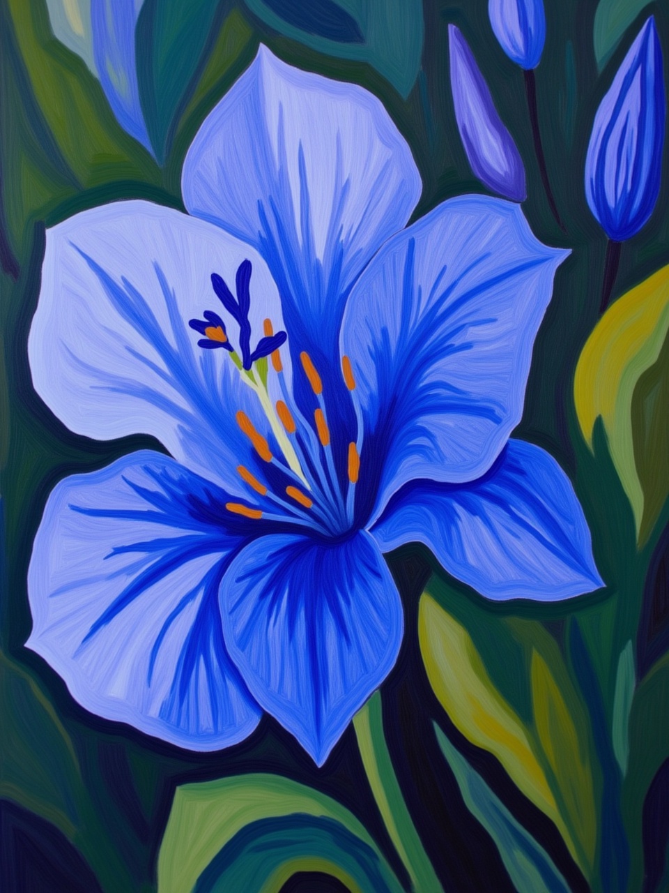 abstract art, beauty, bloom, blossom, blue flower, botanical, close-up, flora, floral design, garden, green leaves, illustration, nature, painting, petals, plant, summer, texture, vivid color, wildlife