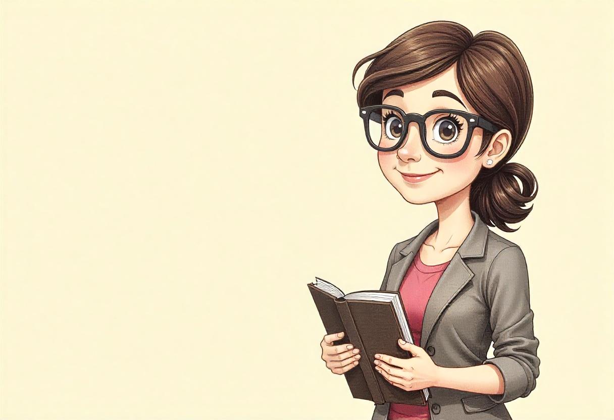 art style, book, brown hair, casual attire, character design, cheerful expression, creativity, education, glasses, happiness, hobbies, illustration, knowledge, lifestyle, literature, reading, smart casual, smiling, wellness, young woman