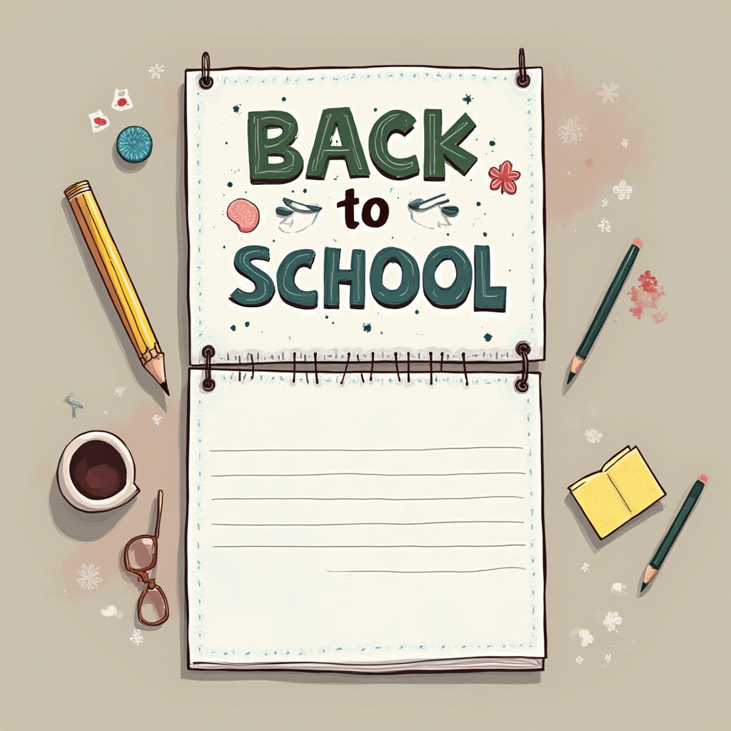 Colorful stationery surrounds a sheet titled Back to School, perfect for organization and planning for the academic year ahead.