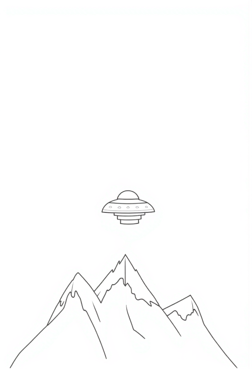 UFO, adventure, alien, clear sky, creativity, drawing, enjoyment, exploration, flying saucer, illustration, imagination, landscape, mountains, mystery, nature, outdoor, sci-fi, science, surreal, travel