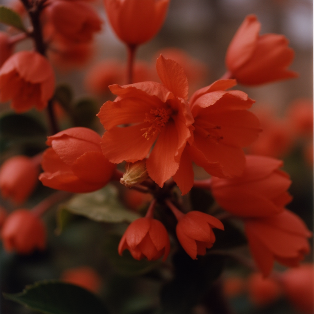 Bright red flowers bloom in spring garden setting