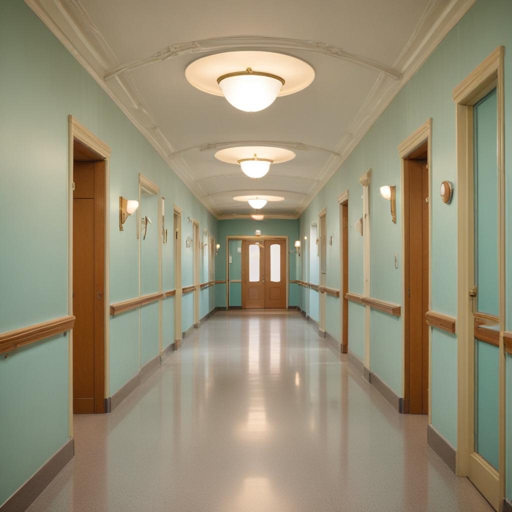 Brightly lit hallway in a modern building setting