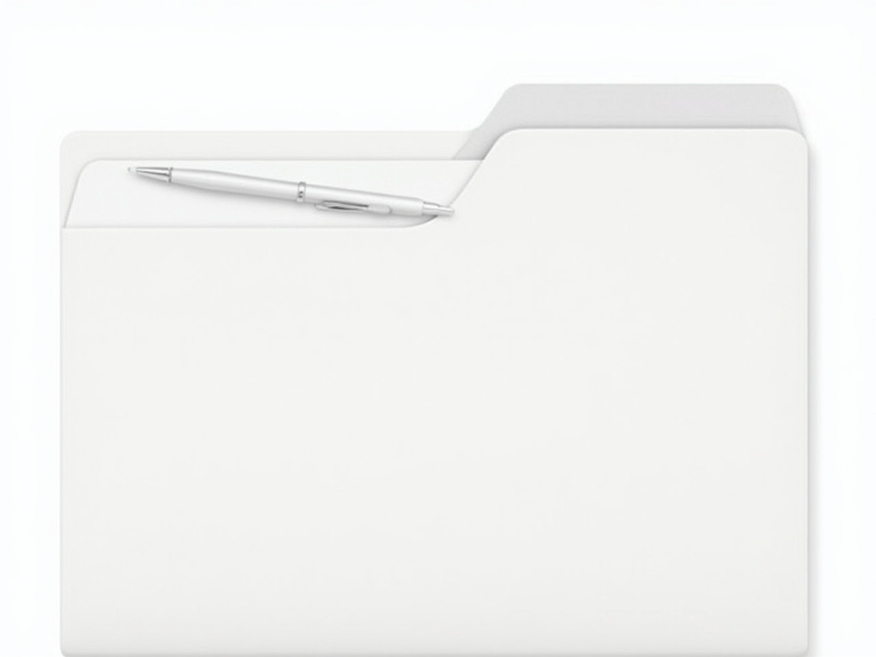 A clean workspace featuring a white folder and a silver pen, ideal for organizing documents during office tasks or study sessions.