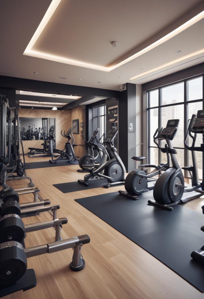 Modern gym interior with various workout equipment