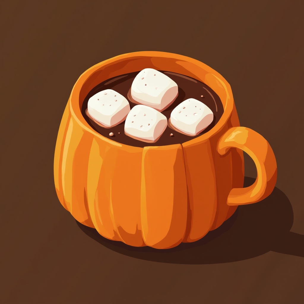 Cozy hot chocolate in a pumpkin-shaped cup with marshmallows
