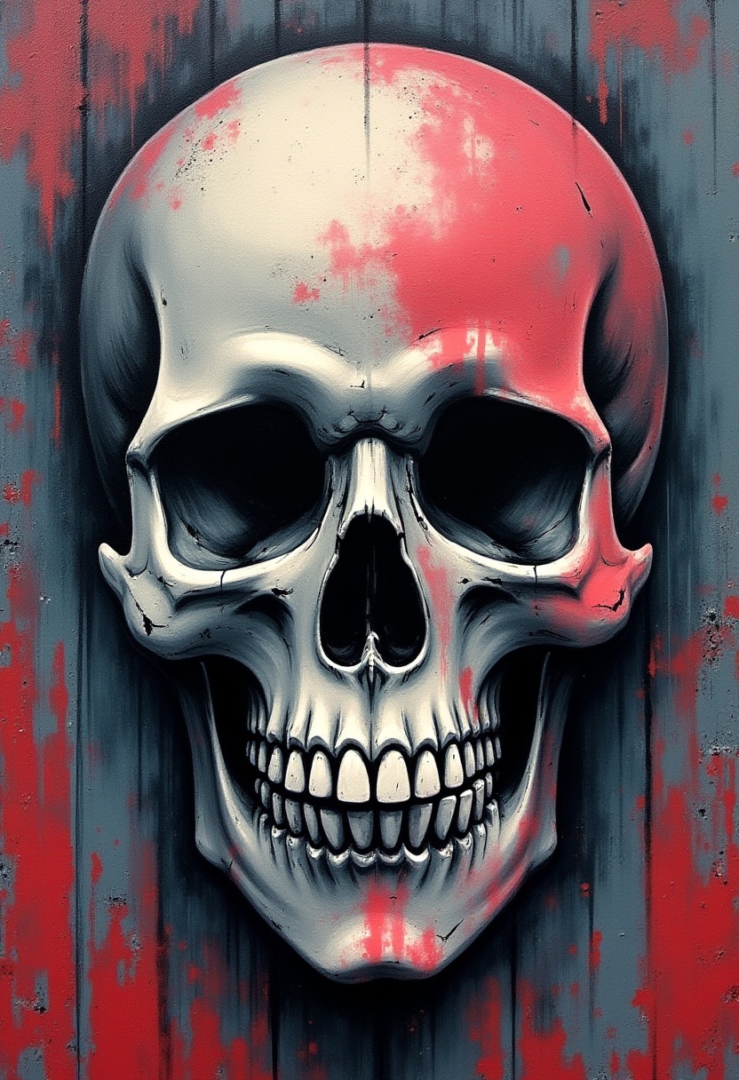 art, artwork, bone, creepy, decoration, design, detailed, gothic, gray, horror, illustration, metal, paint, red, shadow, skull, style, symbol, texture, wall