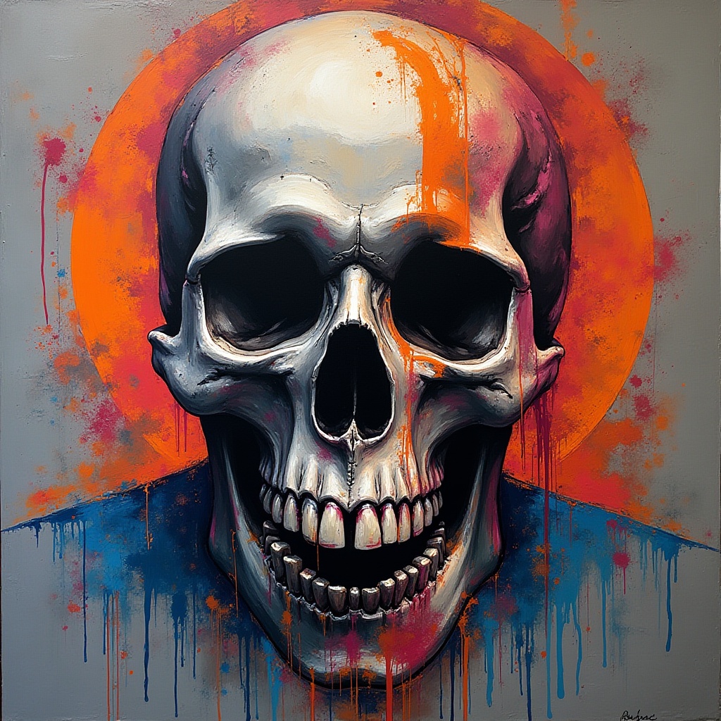 abstract, art, artwork, background, bold, colors, contrasting, creative, design, details, expression, graphic, illustration, modern, painting, skull, texture, unique, visual art, wall art