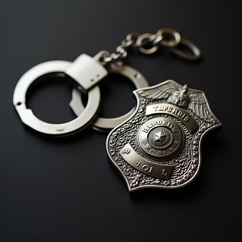 arrest, authority, badge, black, crime, department, emblem, handcuffs, investigation, justice, law enforcement, loyalty, metal, police, rights, security, shiny, surface, symbol, tools