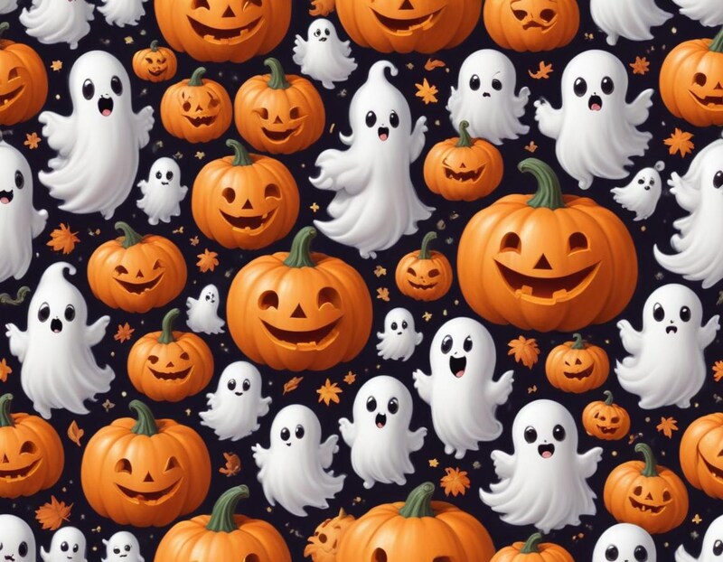 autumn, autumn leaves, celebration, cheerful, decorations, design, festive, ghosts, halloween, joyful, kids, october, orange, pattern, playful, pumpkins, seasonal, spooky, themed, white