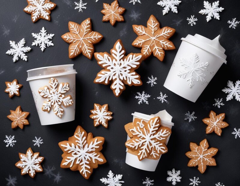 baking, celebration, coffee, cookies, cozy, decoration, dessert, drinks, festive, food, gingerbread, holiday, icing, seasonal, snowflakes, sugar, sweets, treats, warm, winter