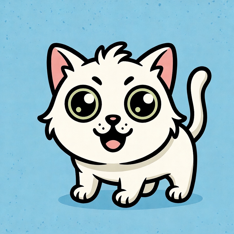 adorable, animal, animation, background, big eyes, cartoon, cat, character, cute, design, face, feline, fun, happy, illustration, pet, playful, smiling, whiskers, white cat