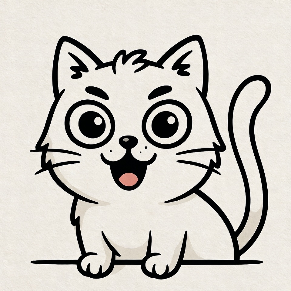 adorable, animal, big eyes, cartoon, cat, character, cute, design, digital art, expressive, furry, happy expression, illustration, joyful, pet, playful, smiling, whimsical, white cat, young cat