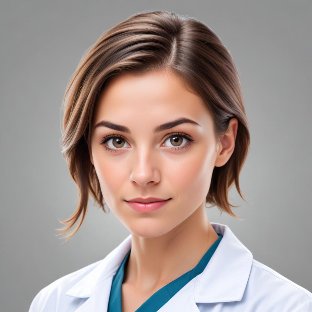 A young woman in a white lab coat looks confidently at the camera, portraying professionalism in a healthcare setting.