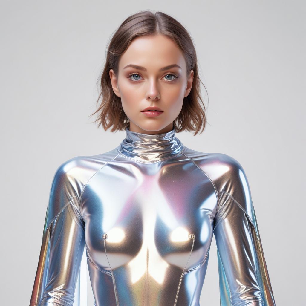 aesthetic, artist, beauty, bodysuit, contemporary, creative, design, fashion, female, glossy, headshot, metallic, model, outfit, portrait, pose, silver, studio, style, texture