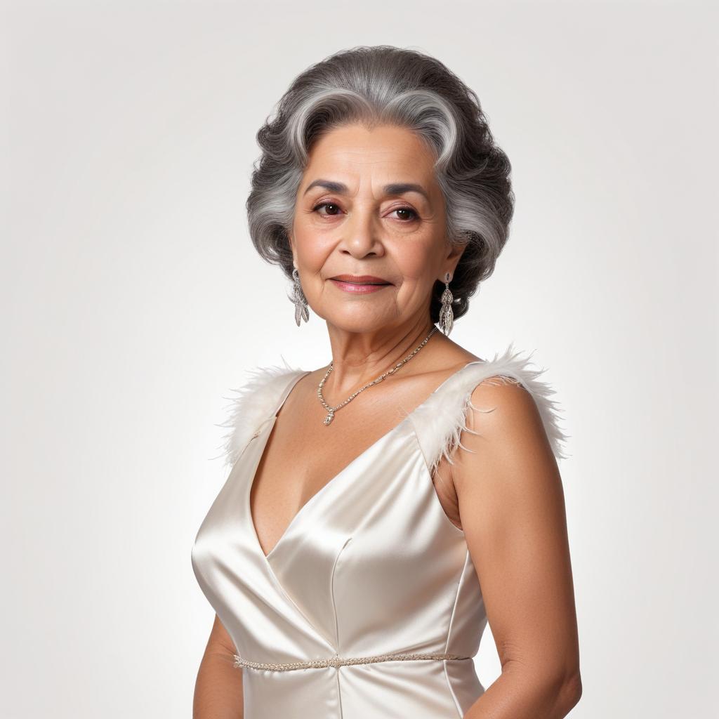attire, beauty, celebration, charm, classic style, confidence, elegant dress, facial expression, fashion, grace, hairstyle, jewelry, makeup, maturity, portrait, silver hair, soft light, sophisticated, timeless, woman