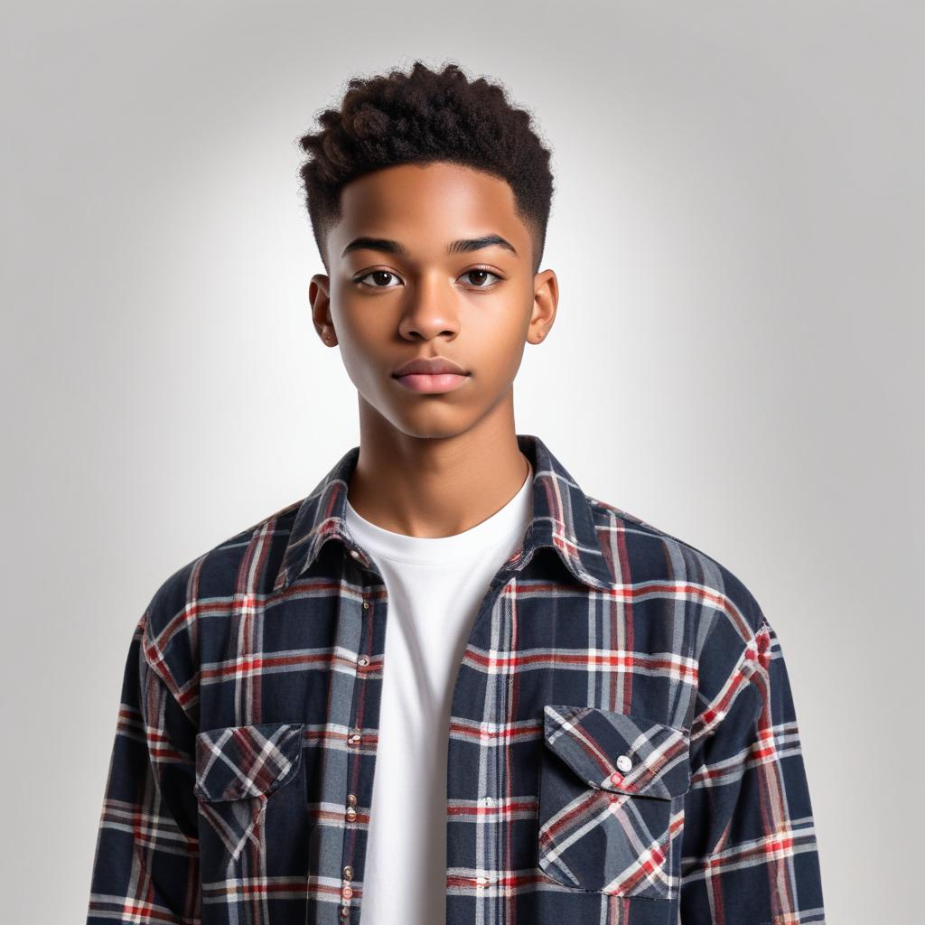 boy, casual style, casual wear, clothing, confident pose, fashion, flannel shirt, hairstyle, headshot, indoor, light background, natural look, personal style, plaid, portrait, relaxed expression, smiling, trendy, young male, youth