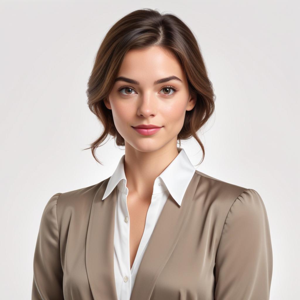 beauty, business, calm demeanor, casual, clothing, confidence, corporate, elegance, expression, fashion, formal attire, hairstyle, meeting, neutral background, portrait, professional, representation, style, woman, young adult