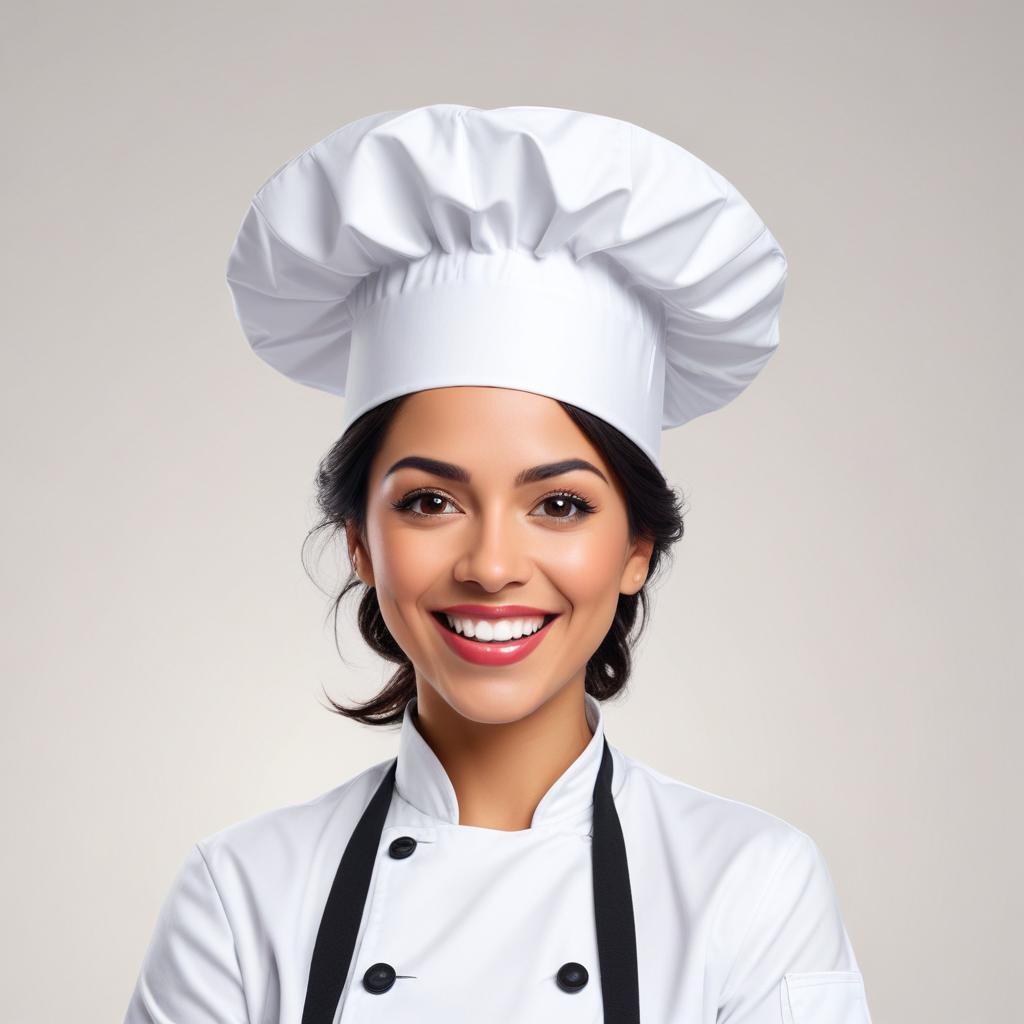 A young chef is smiling confidently while wearing a white uniform and hat, expressing enthusiasm for cooking and culinary arts.