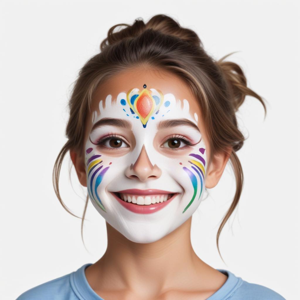 Girl with colorful face paint smiling joyfully