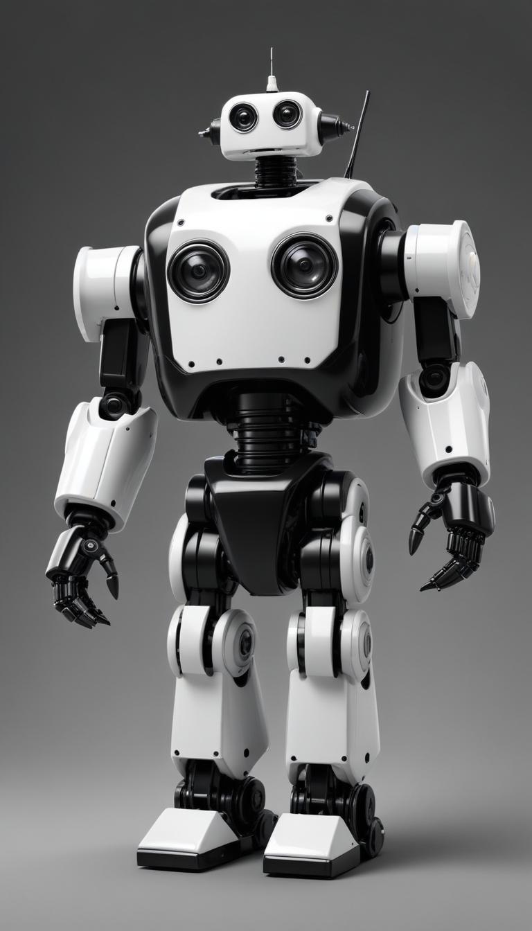 Robotic figure in a sleek black and white design