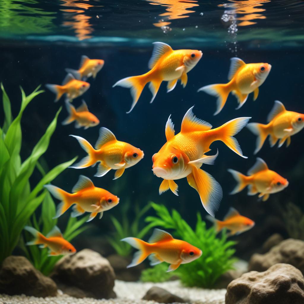 Goldfish swimming in a bright aquarium with plants