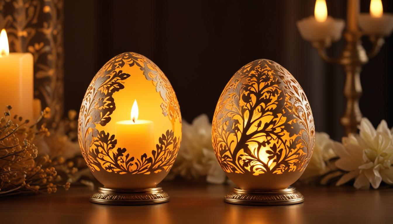 Two elegant candles in ornate holders glow softly, creating a warm and inviting atmosphere in a beautifully decorated room.
